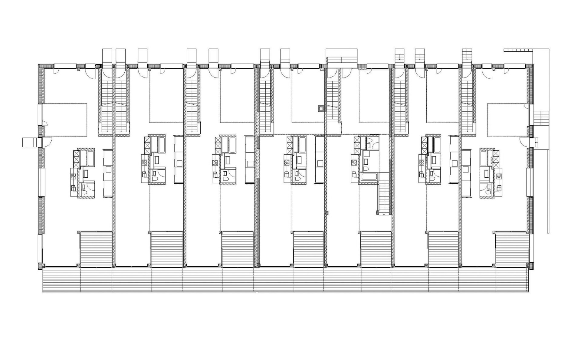 Gebäudetransformation: Der ehemaligen Holzbaubetrieb bietet neuen Lebensraum für individuelle Ansprüche. Die Schreinereihalle wird zur flexiblen Wohnwerkstatt. Die gegebene Gebäudetiefe von 20 Metern und die Raumhöhe von über 3 Metern liefern die typischen Merkmale der Wohneinheiten und stiften Identität.