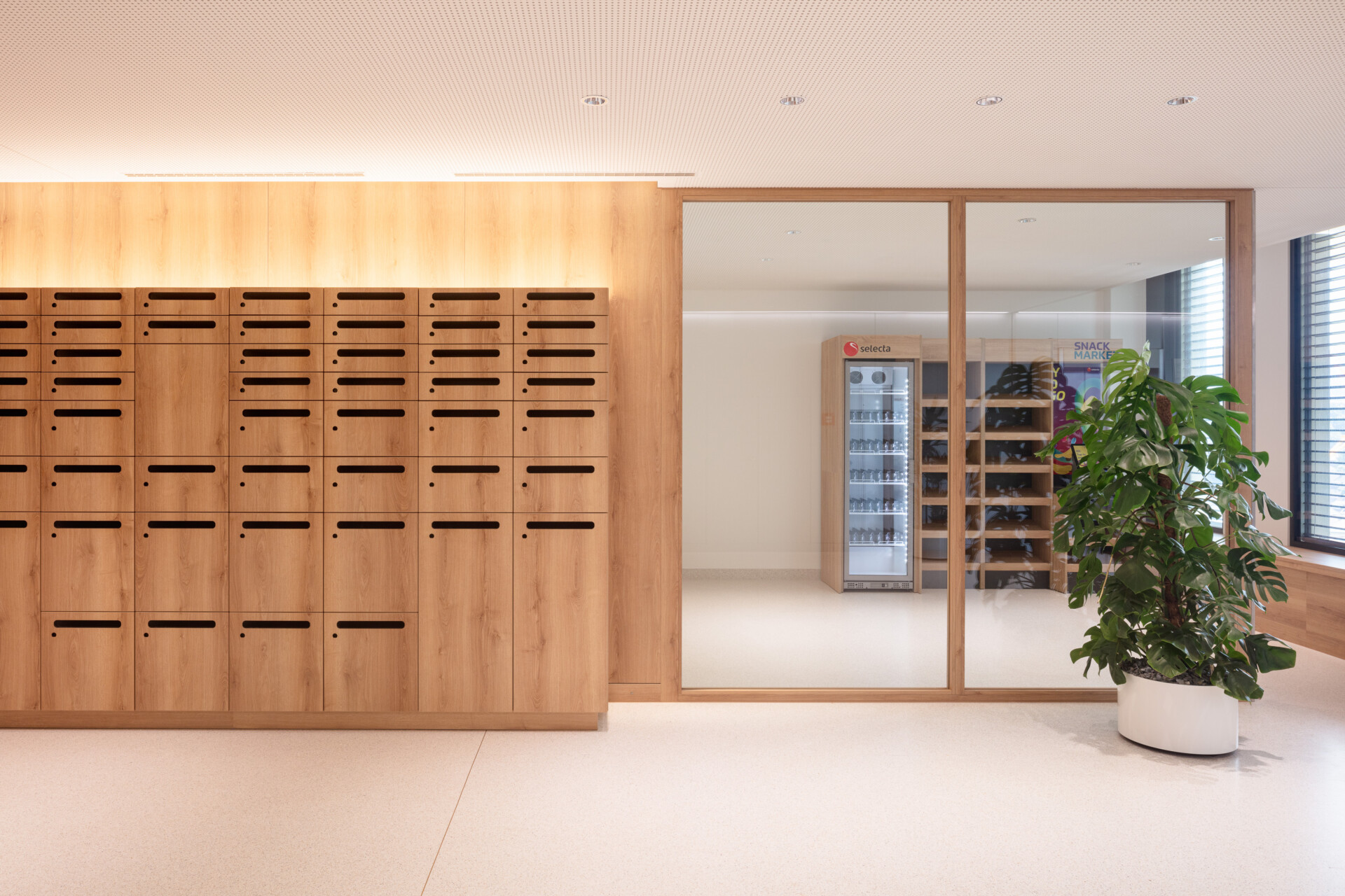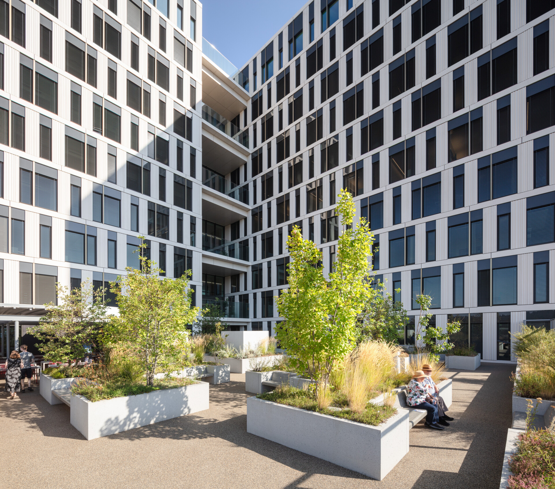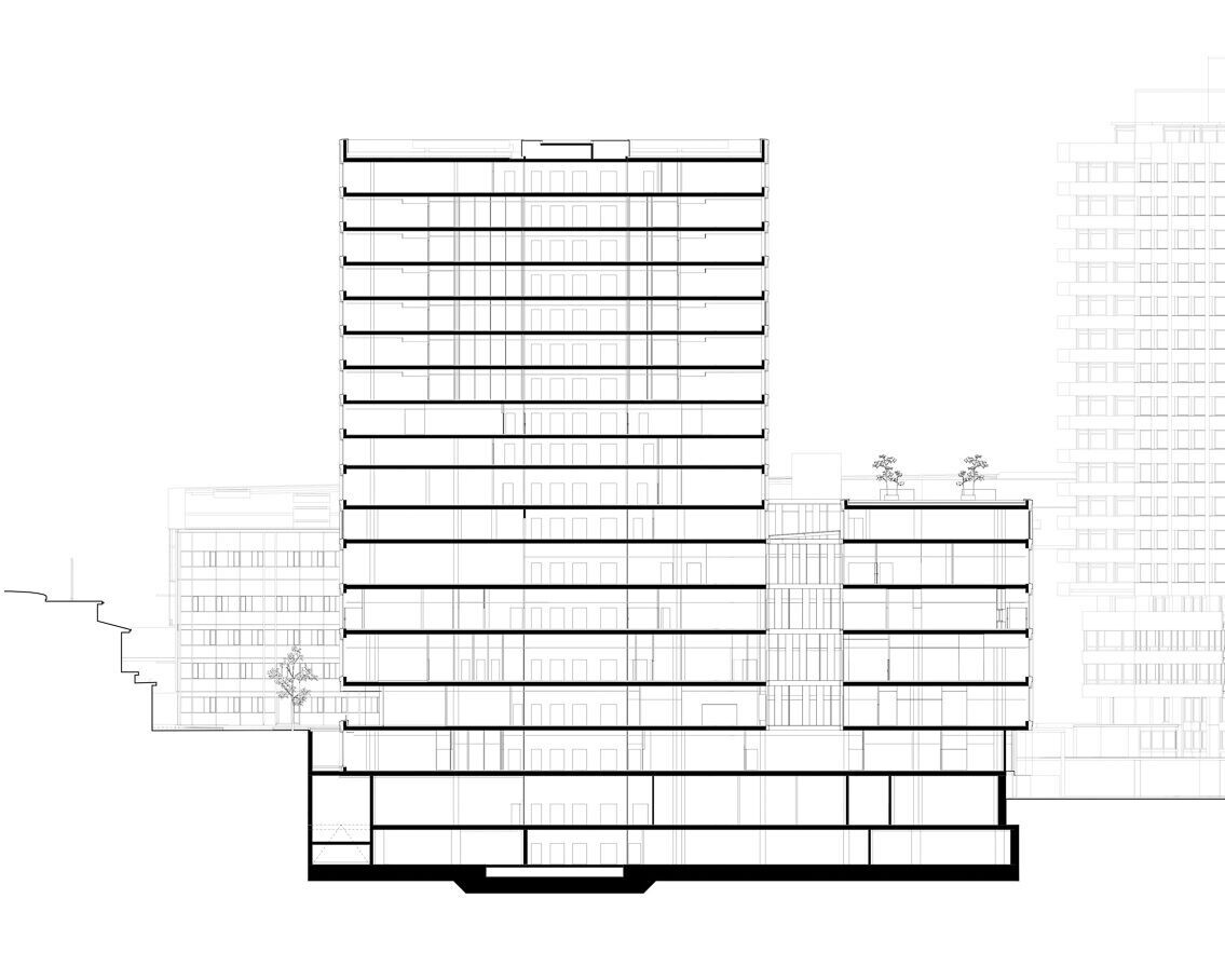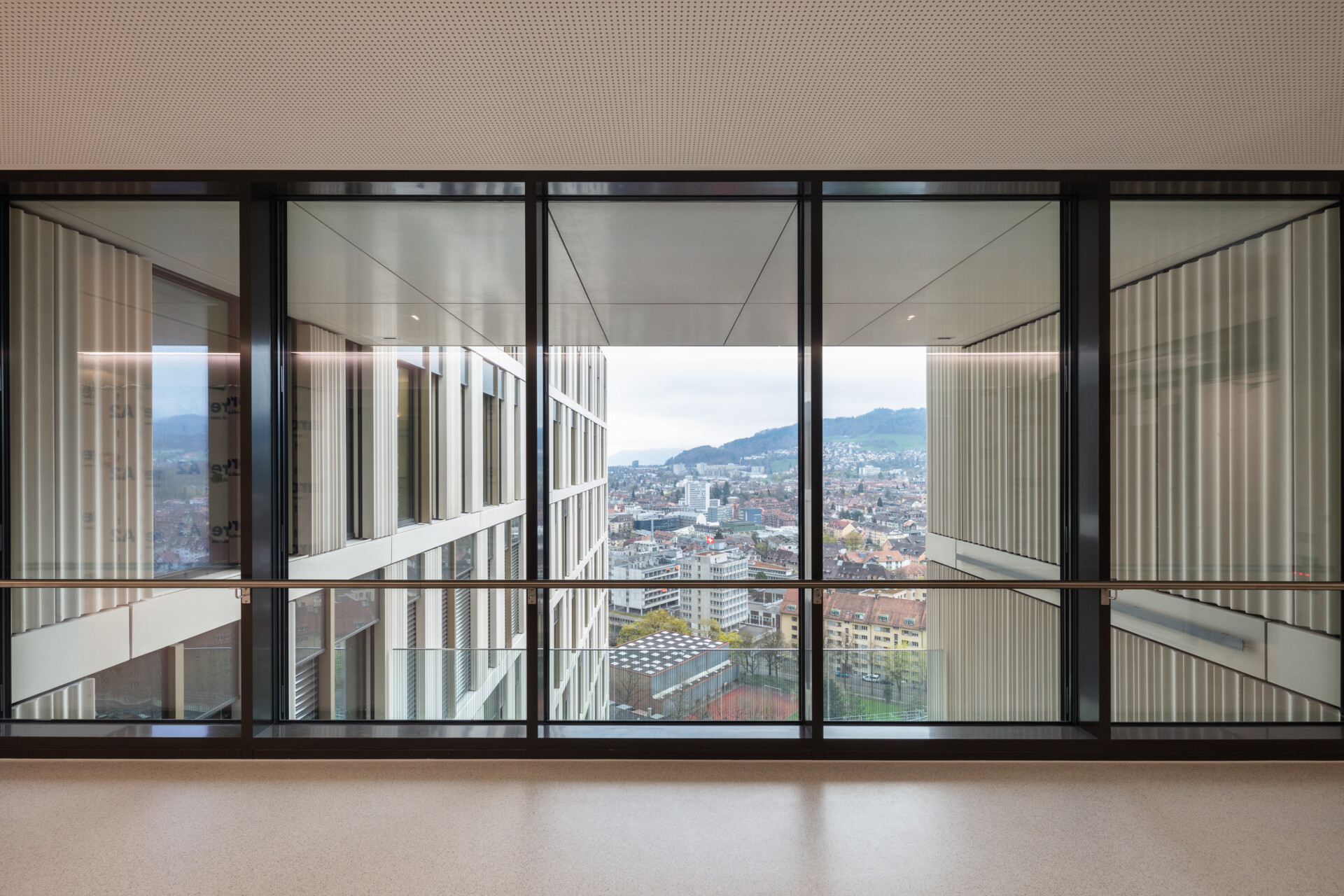 Die Funktionsgeschosse bleiben dank der innenliegenden Kerne in ihrer Nutzung flexibel. Rund 18 Meter tiefe Raumschichten entlang der südwestlichen und nordöstlichen Aussenfassade bieten ein Maximum an Flexibilität und lassen Spielraum für künftige Anpassungen. Das Technikgeschoss oberhalb der Funktionsgeschosse reduziert die Steigzonenflächen, erhöht die Möglichkeit nachzurüsten und vereinfacht eine konsequente Systemtrennung.