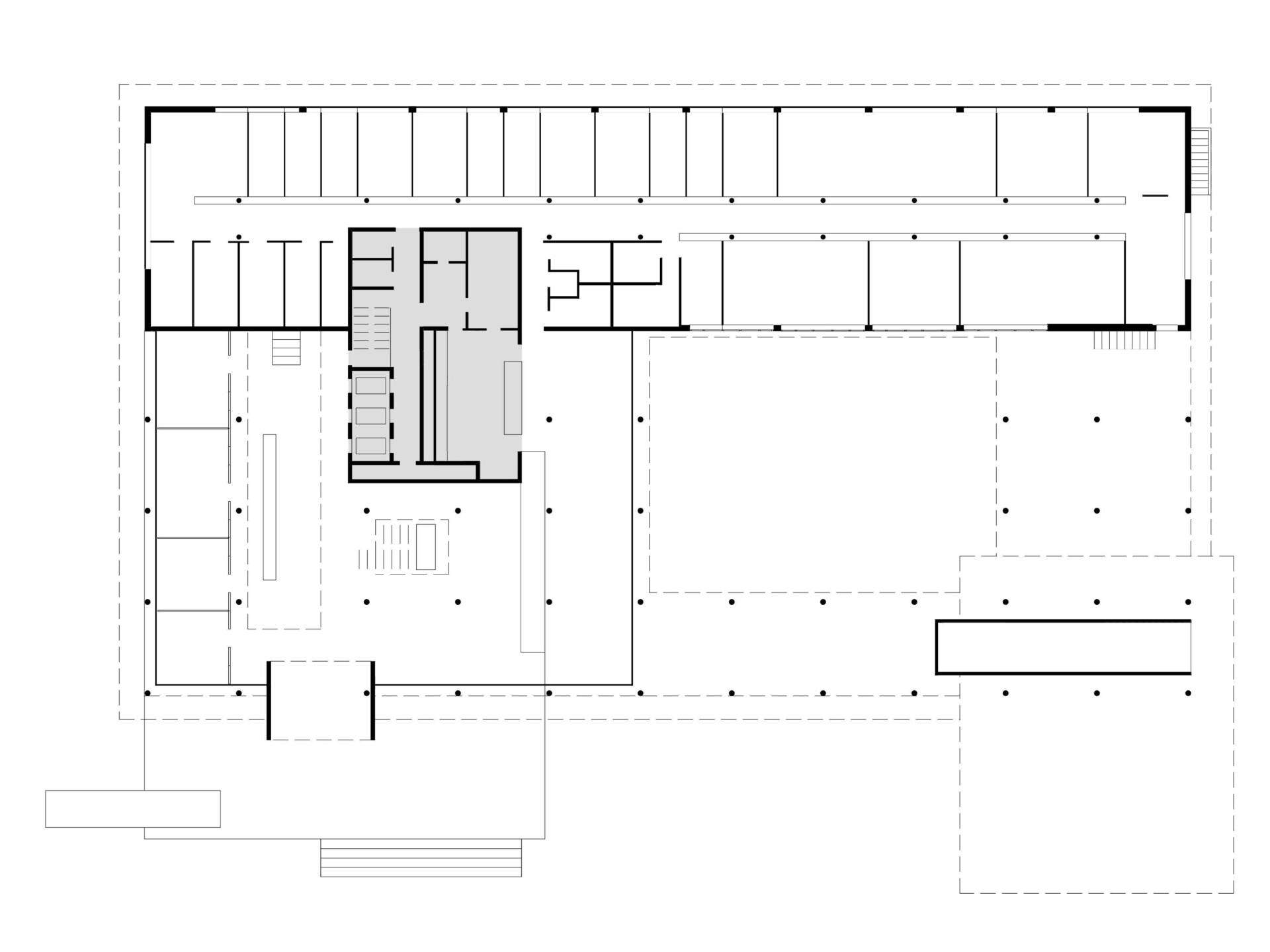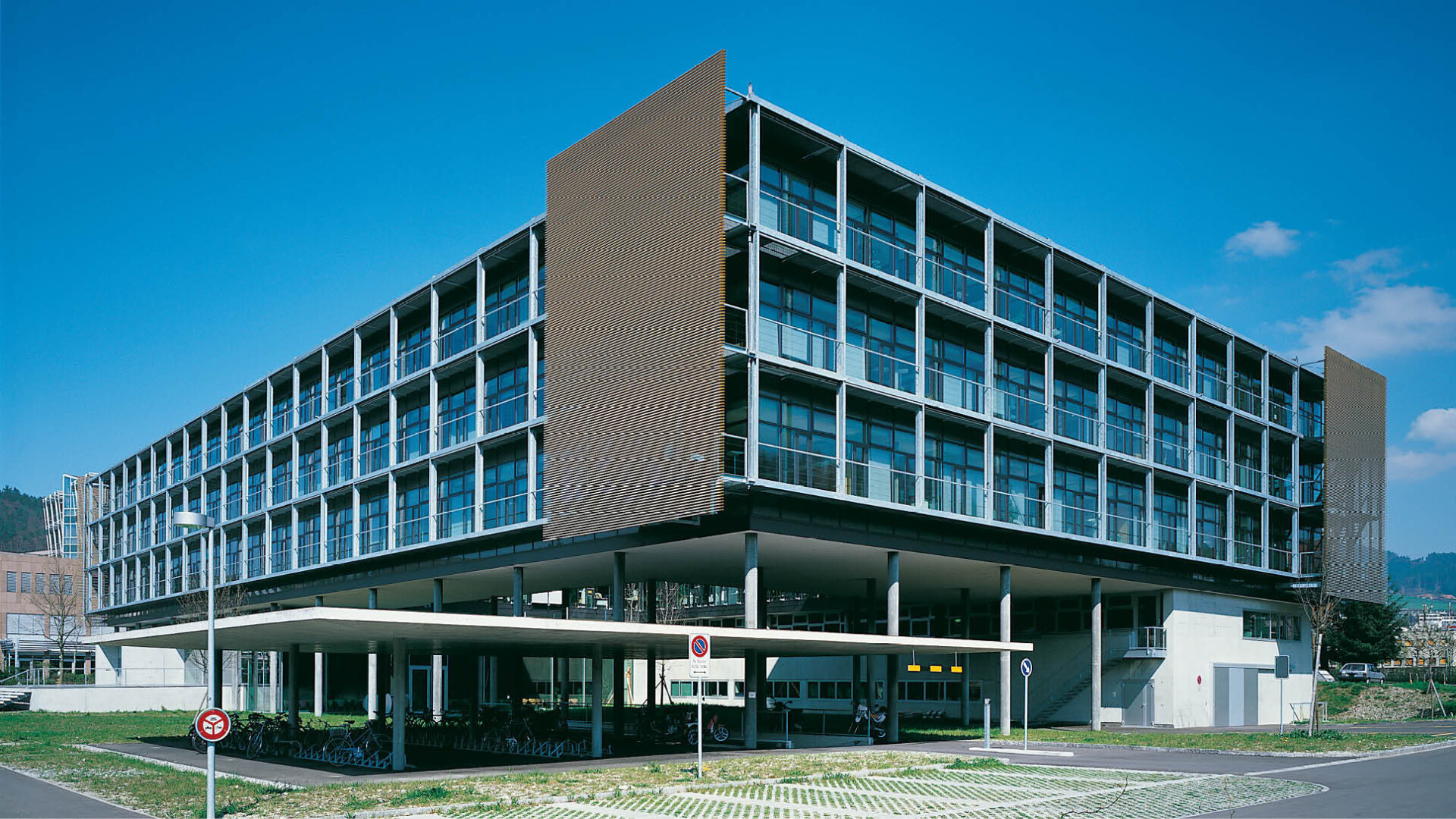 Die kurze Planungs- und Bauzeit bei gleichzeitig offenen Standard- und Layoutfragen führte zu einer konsequenten Systemtrennung. So wurden die Abhängigkeiten von Rohbau und Ausbau systematisch entflochten. Ein einfaches Betonskelett dient als primäre Basis. Alle weiteren Elemente wie die Gebäudehülle, die Haustechnik sowie sämtliche Böden (Doppelböden) und Trennwände wurden in modularer Bauweise Schicht für Schicht in das Gebäude eingebracht.