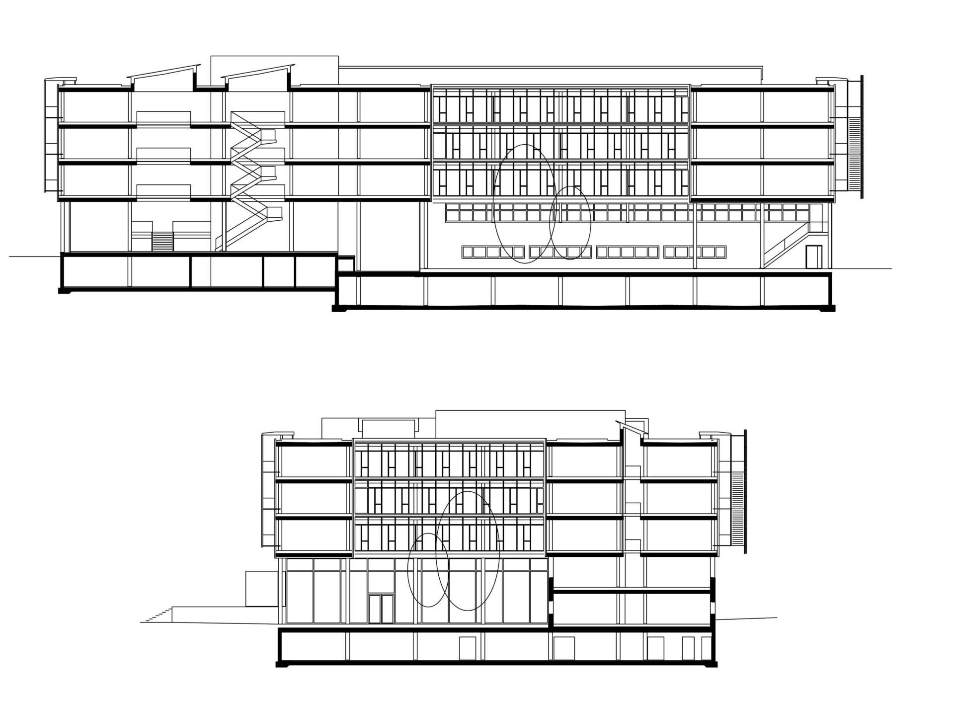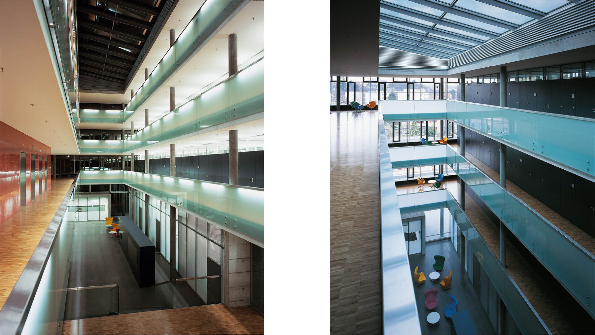 Die Entflechtung der unterschiedlichen Anforderungen innerhalb der Verwaltung führte GWJ Architektur zu einem Denken in Schichten: Horizontal geschichtete Ebenen bieten Raum für unterschiedliche Arbeitsformen und ermöglichen eine flexible Nutzung. Vertikale Schichten aus Kern, Halle, Hof und Lichtschlitz bilden besondere Erlebnisorte und gliedern die Arbeitsebenen.