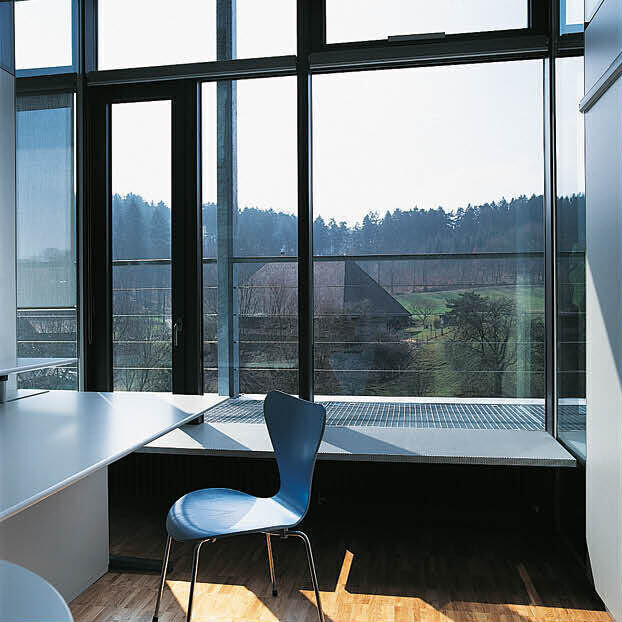 Durch Umstrukturierungen innerhalb der Bank wurde das geplante Gebäude frei. Das nutzungsneutrale Konzept kam zum Tragen, als der Bund als Mieter seine Anforderungen in die Planung einbrachte. Das Schichtenkonzept wurde verfeinert. Die langen Schrankkörper mit Oberlichtern und die tiefe, lichtdurchflutete Fassadenschicht prägen den hellen und offenen Bürocharakter.