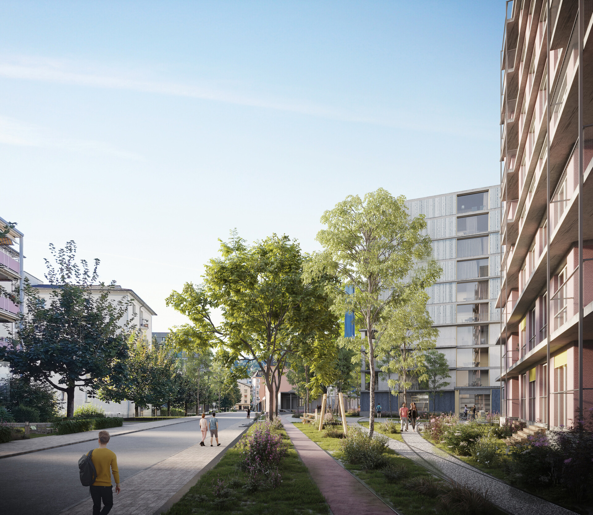 Lebendig ist die Stadt, wenn sie sich verändern kann und dieses Sich-Verändern zur Begegnung und Gemeinschaft beiträgt. In einer lebendigen Stadt kommt Neues zum Vorhandenen hinzu. In diesen Übergängen kann die Stadt lernen. Damit dieses «Lernen» möglich wird, steuern 6 Prinzipien den Entwicklungsprozess: 1. Bestand ist Ressource, 2. eine stabile Kernstruktur ist die Basis der «lernenden Stadt», 3. an den Grenzen entsteht Leben, 4. die Möglichkeit zu «Bauen nach Bedarf», 5. sich verändernde Räume leben, 6. Partizipation ist Kultur.