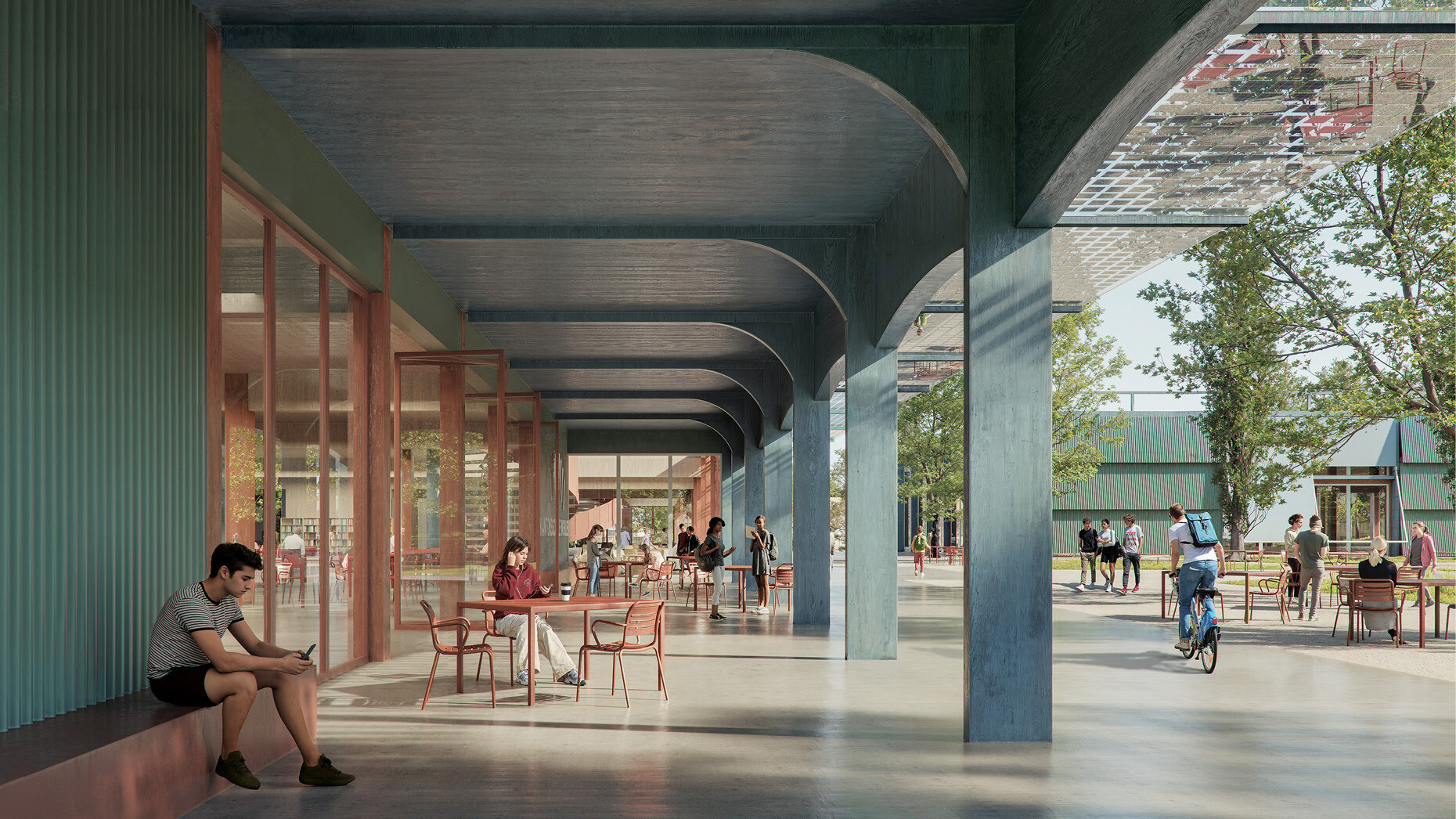 Das Projekt versteht den Campus als lernende Struktur. Es stärkt das Bestehende, klärt die Orientierung und ergänzt dort, wo neue räumliche Antworten nötig sind. Aus einzelnen Gebäuden wird ein zusammenhängender Schulcampus – offen, flexibel und fest im Ort verankert.
