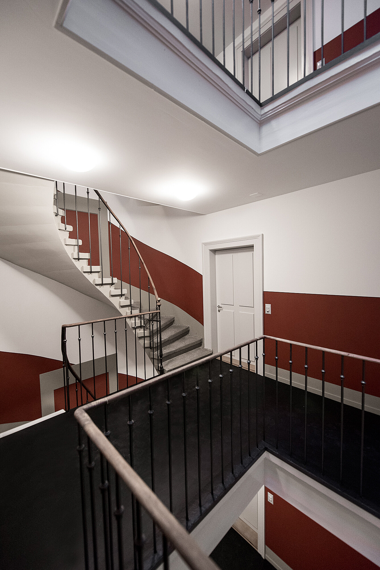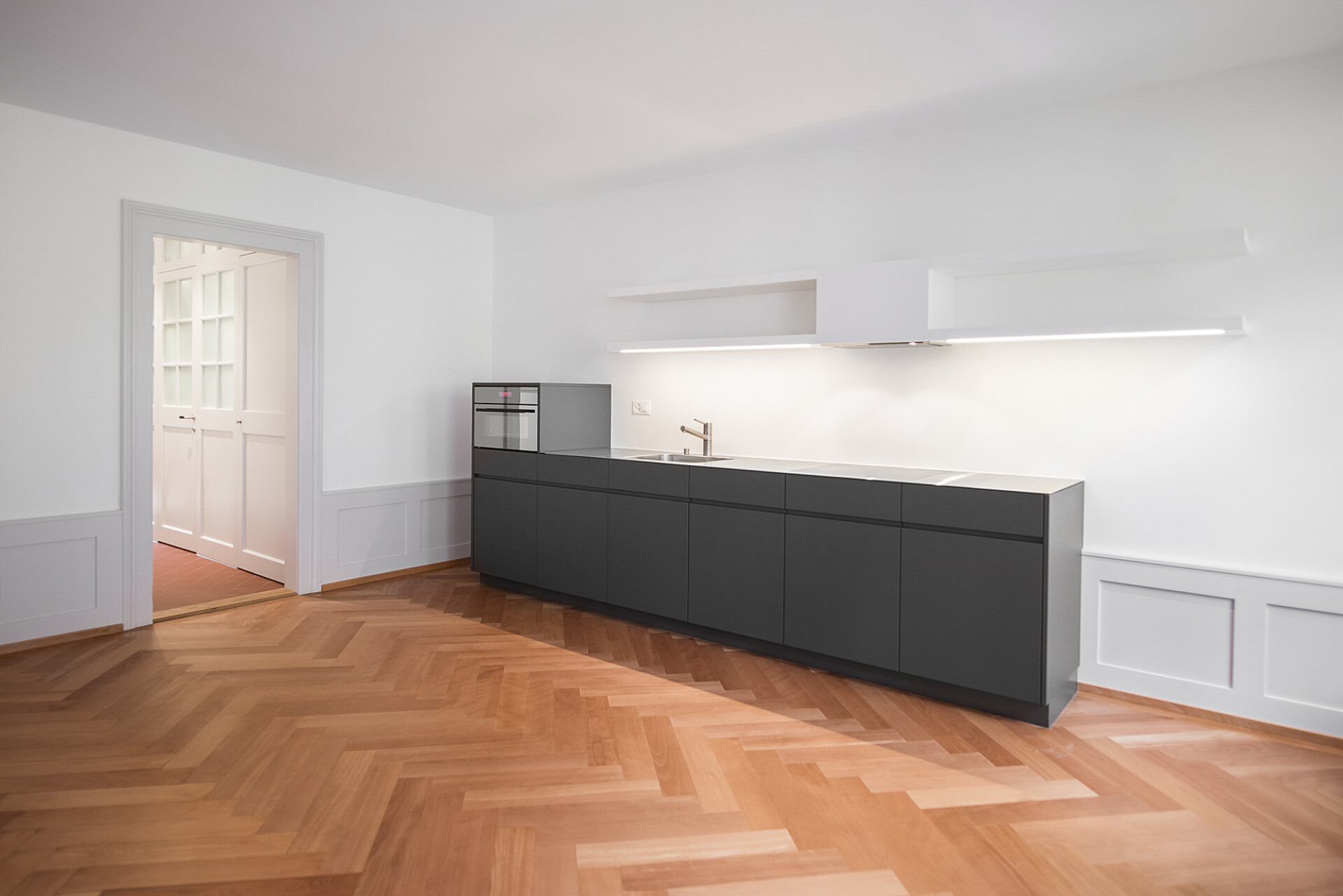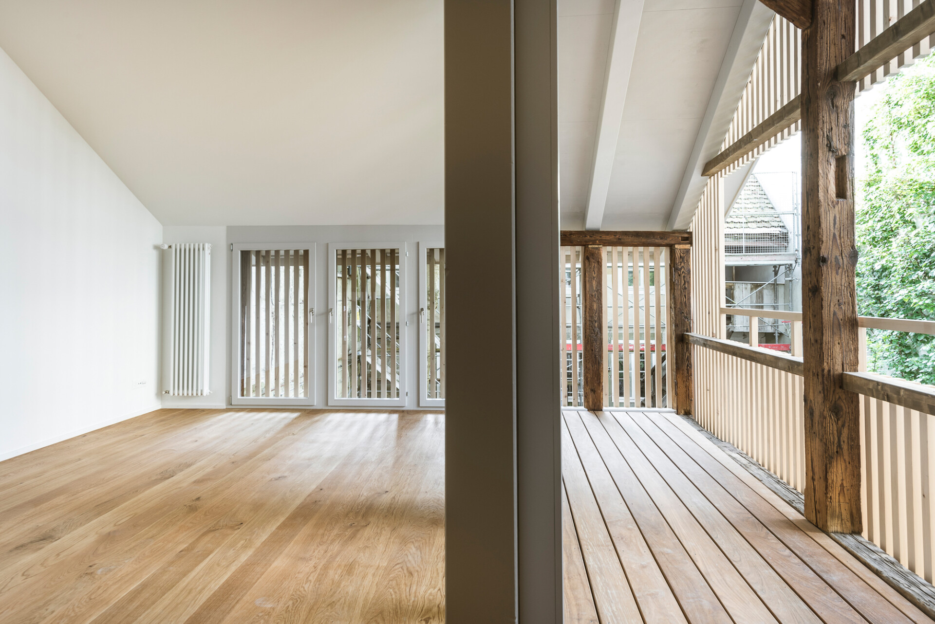 GWJ respektiert den Bestand und macht ihn, wenn möglich haltbarer. So werden zum Beispiel die ehemaligen unbehandelten Holzriementannenböden bei schlechter Substanz teilweise neu in Eiche ausgeführt.