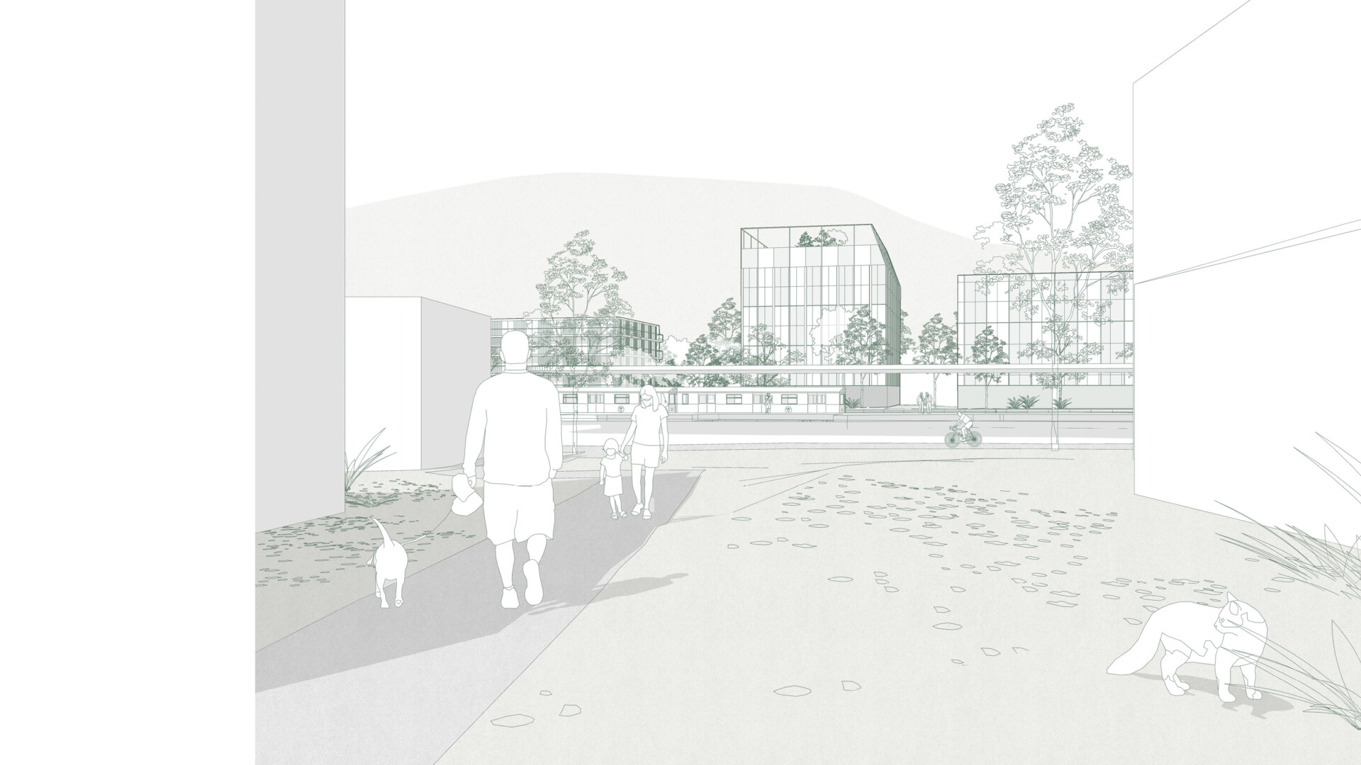 entlang der Industriestrasse entsteht eine fokussierte Belebung. Der erhaltene