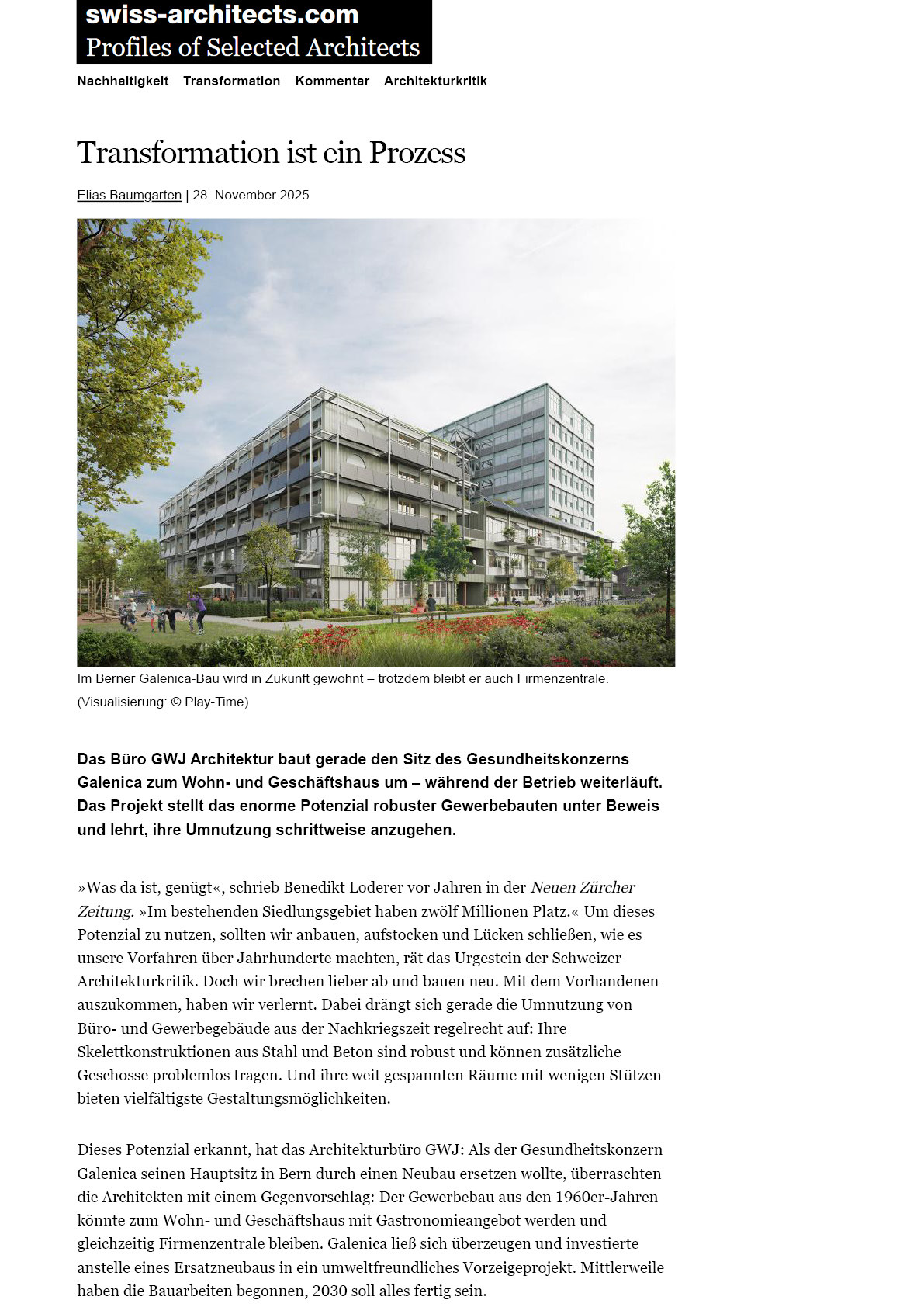 swiss-architects magazin online 11|25: «Transformation ist ein Prozess»